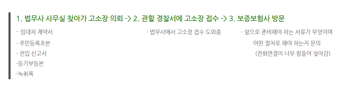 다행히 우리는 보증보험에 가입해 있었기에 보증금을 돌려받을 수 있는 길이 열렸다.