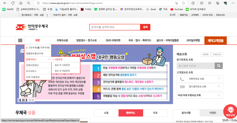 - 등기우편배송조회 (인터넷우체국에서 출력 가능하지만